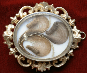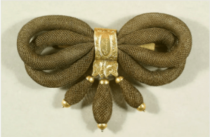 Mr Campbell’s book explains that this roundness can be achieved by braiding and weaving the hair over a dowel or stick. When the design is complete, you neatly slide out the stick and replace it with wire, and mold it into the shape you wish. What a stunning brooch it produces! I cannot wait to be worn!